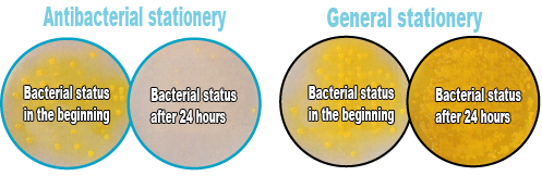 A Antibacterial stationery prevents harm to health caused by bacteria on stationery. In particular, it can prevent cross-infection in schools and offices.