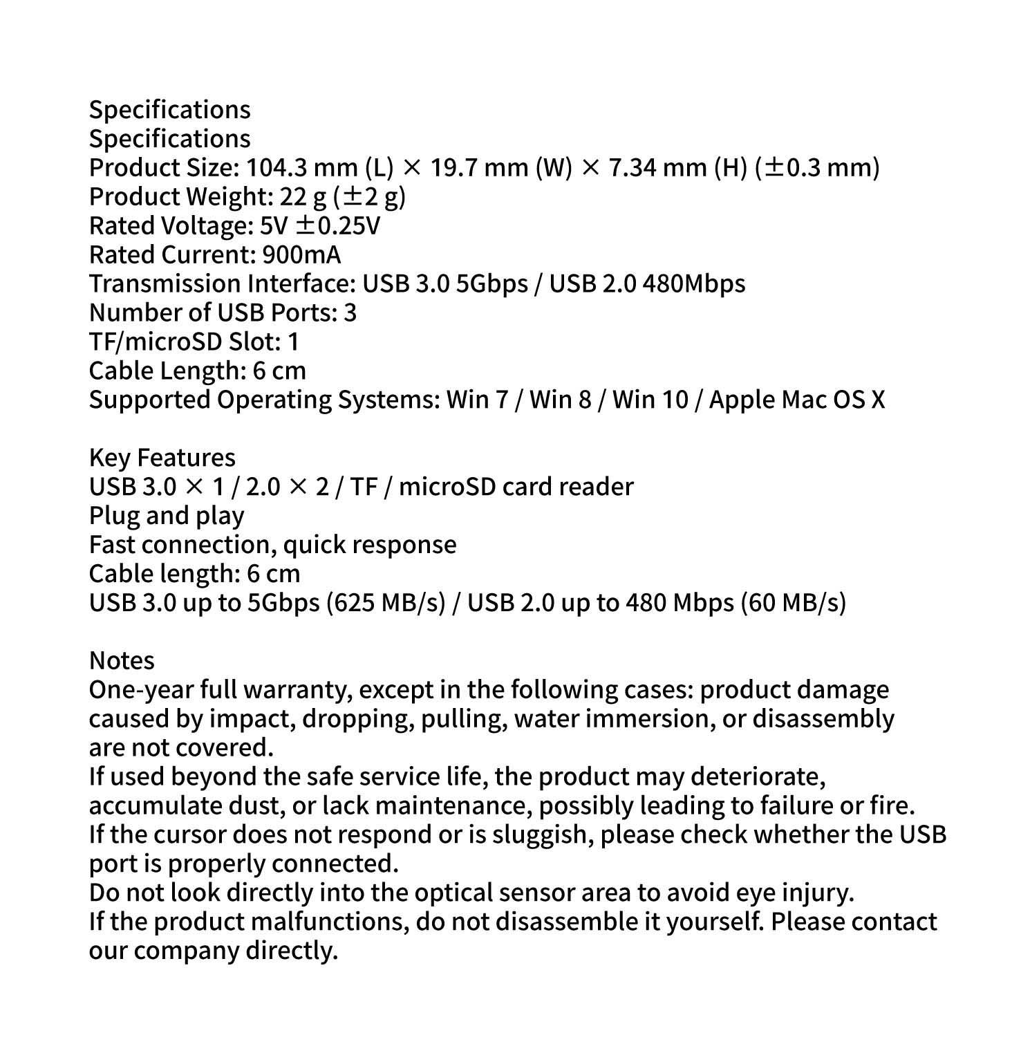 The LY-301A is equipped with 3 USB ports and 1 TF/microSD slot, supporting multiple devices with simultaneous connections and high-speed transmission. Designed for plug and play, it is compatible with multiple operating systems and requires no driver installation. Whether for office, remote teaching, or daily use, it allows you to stay efficient anytime.