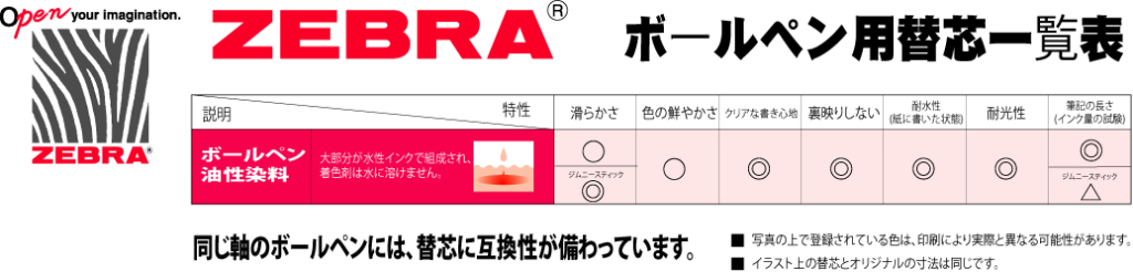 同じ替芯を使用可能なボールペン |