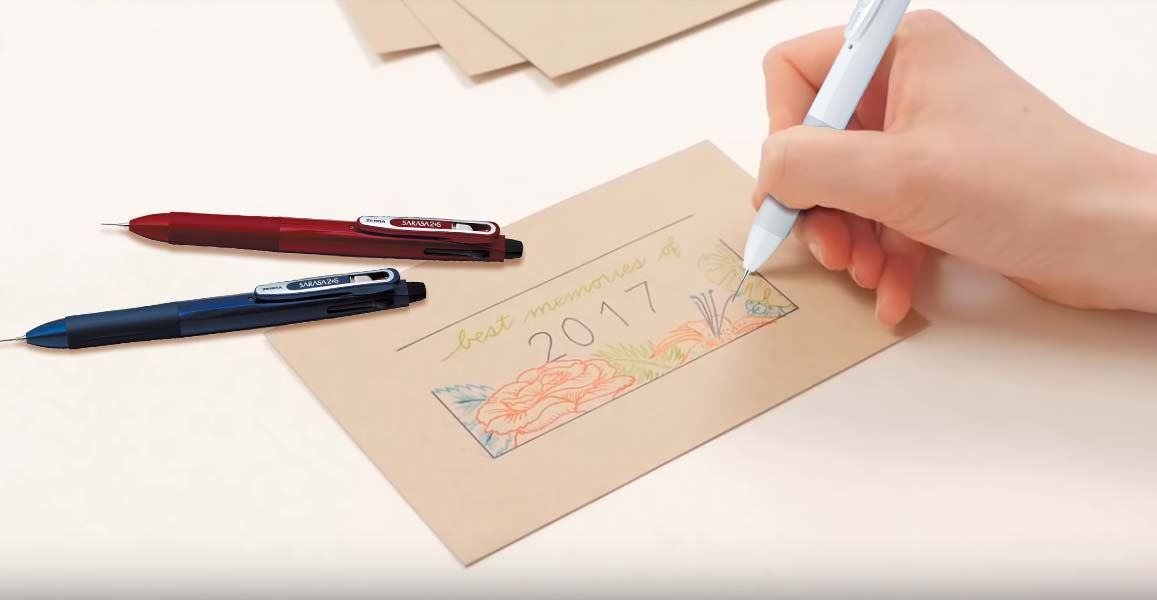 1_SJ2B サラサ 2+SB0.5多色ボールペンの落ち着いた外観の色合いには、ダークブラック、ライトブルー、ネイビーブルー、ピンク、レッド、スノーホワイトの6種類があります。シリコングリップ付きで、より手軽で便利に使用できます。