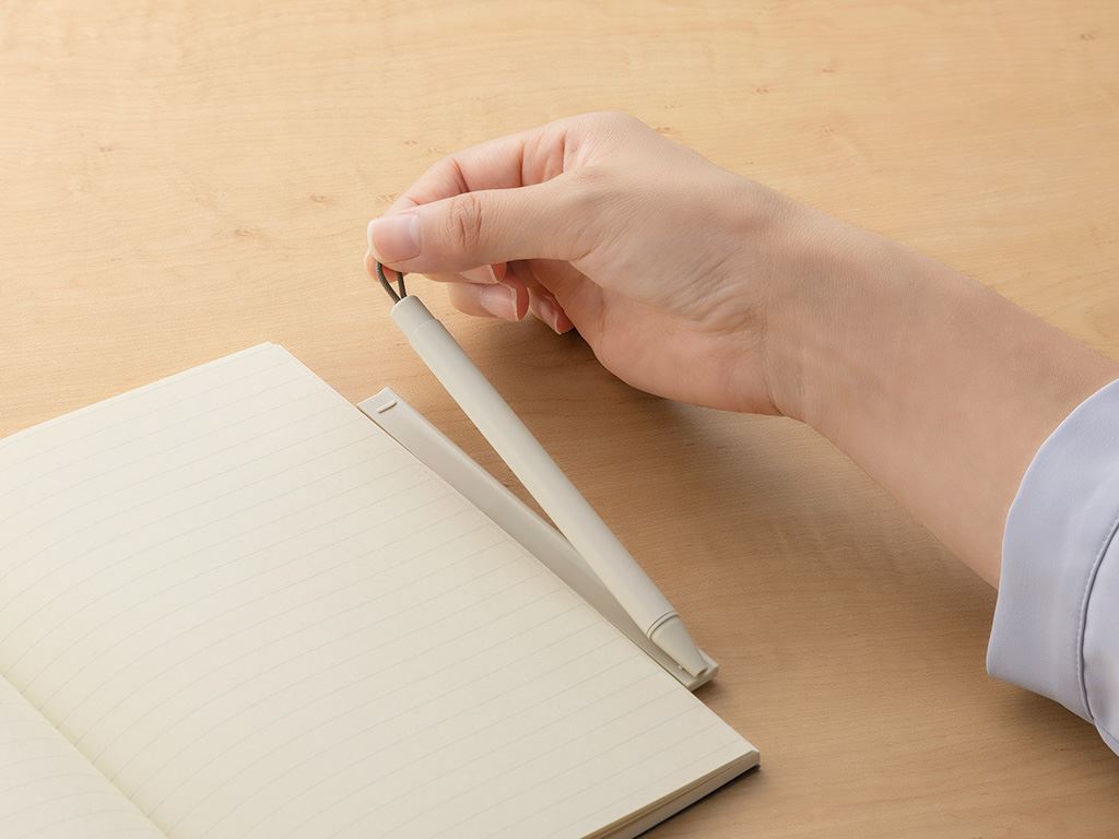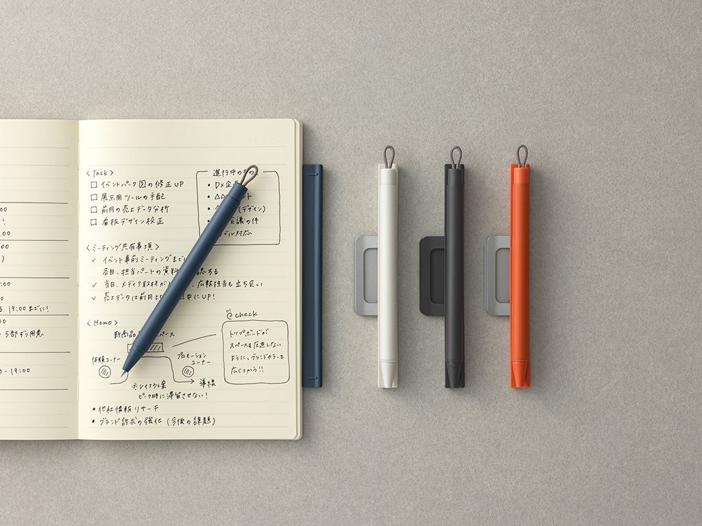 ピタンは2023年度グッドデザイン賞のグッドデザイン賞を受賞した、手軽に持ち運びできるボールペンです。ピタンはまるでノートの一部であるかのように、全く違和感がありません。ノートのホルダー使用箇所は保護シートで保護でき、ボールペンをノートやボード固定用の磁石内蔵のホルダーは繰り返しお使いいただけます。