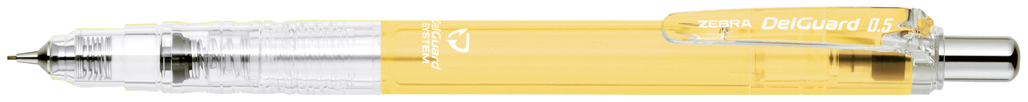日本製のデルガード シャープペンシルでは、革新的な芯が折れないデザインが採用されています。内蔵のスプリング構造が効果的に筆記時の圧力を吸収し、垂直であれ斜め書きであれ、ペン芯が保護され折れにくいデザインです。透明なペン軸でデルガード構造がはっきり表現され、0.5㎜ペン芯を組み合わせれば、スムーズでクリアな筆記が実現します。つまり防止機能付きで、ペン芯の残りで穴がふさがれる状況を回避し、安定した書き物を実現します。