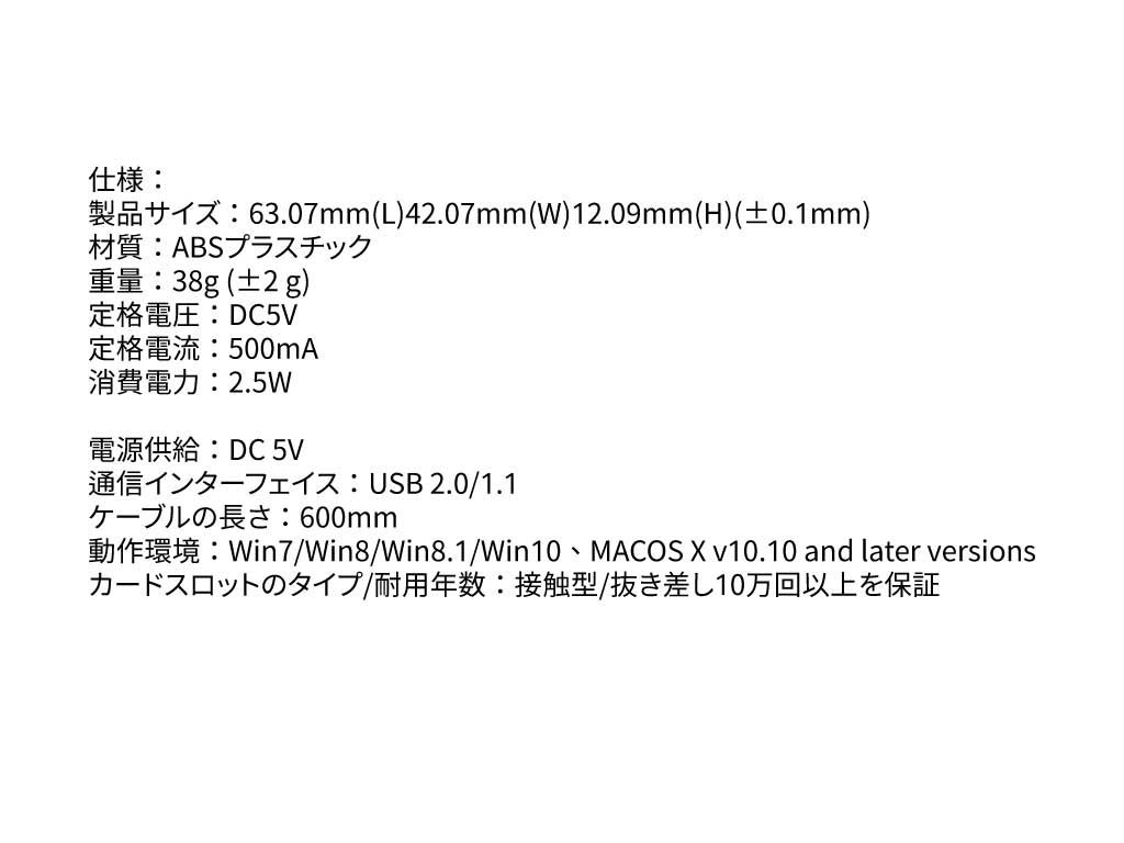 • 読み取り対応:ICキャッシュカード/労働保障カード/工商証明/iCash/デジタルウォレット/TF/MicroSD