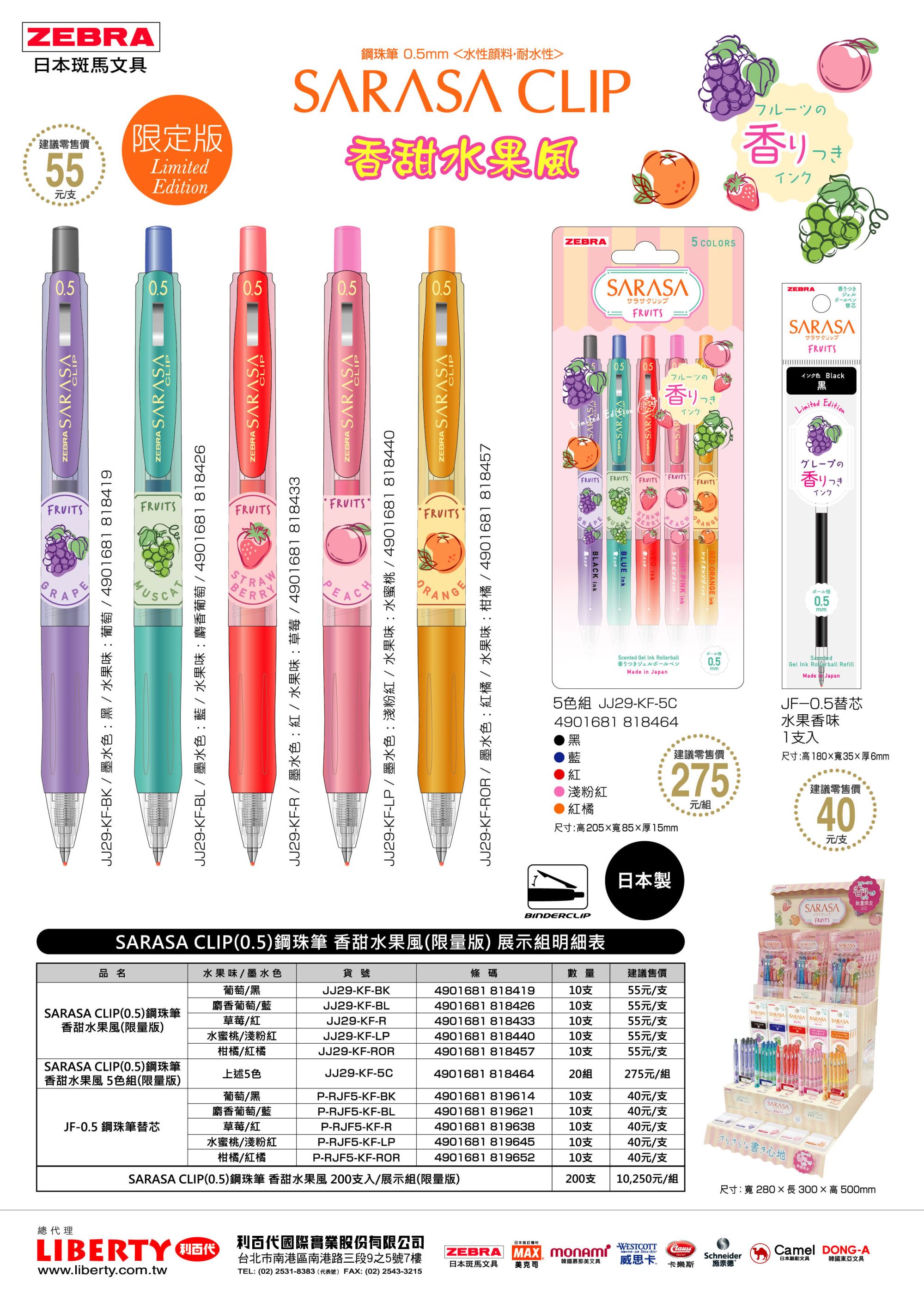 1.【SARASA CLIP 香甜水果風鋼珠筆 JJ29-KF系列】