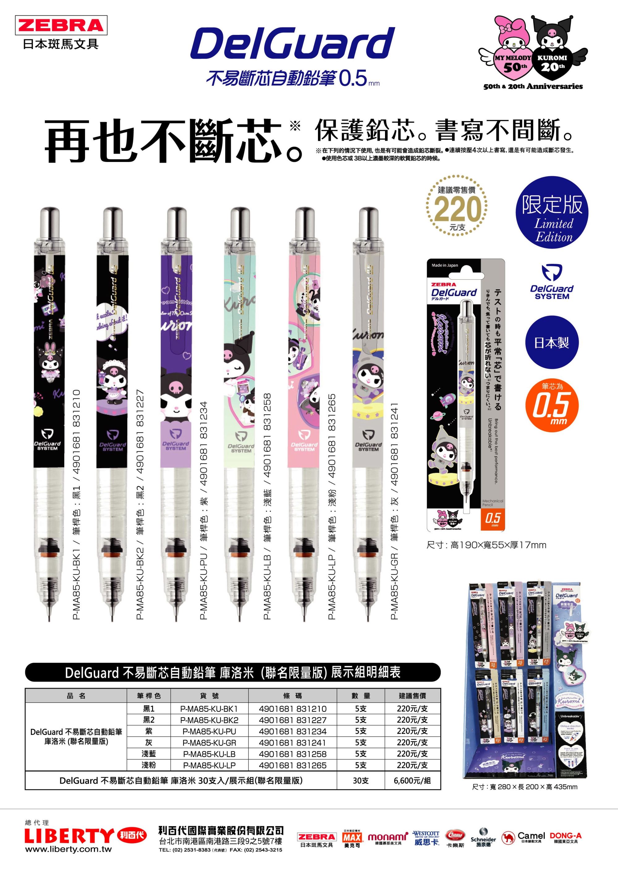 - DelGuard P-MA85-MMKU 0.5mm 不易斷芯自動鉛筆 庫洛米 聯名限量款