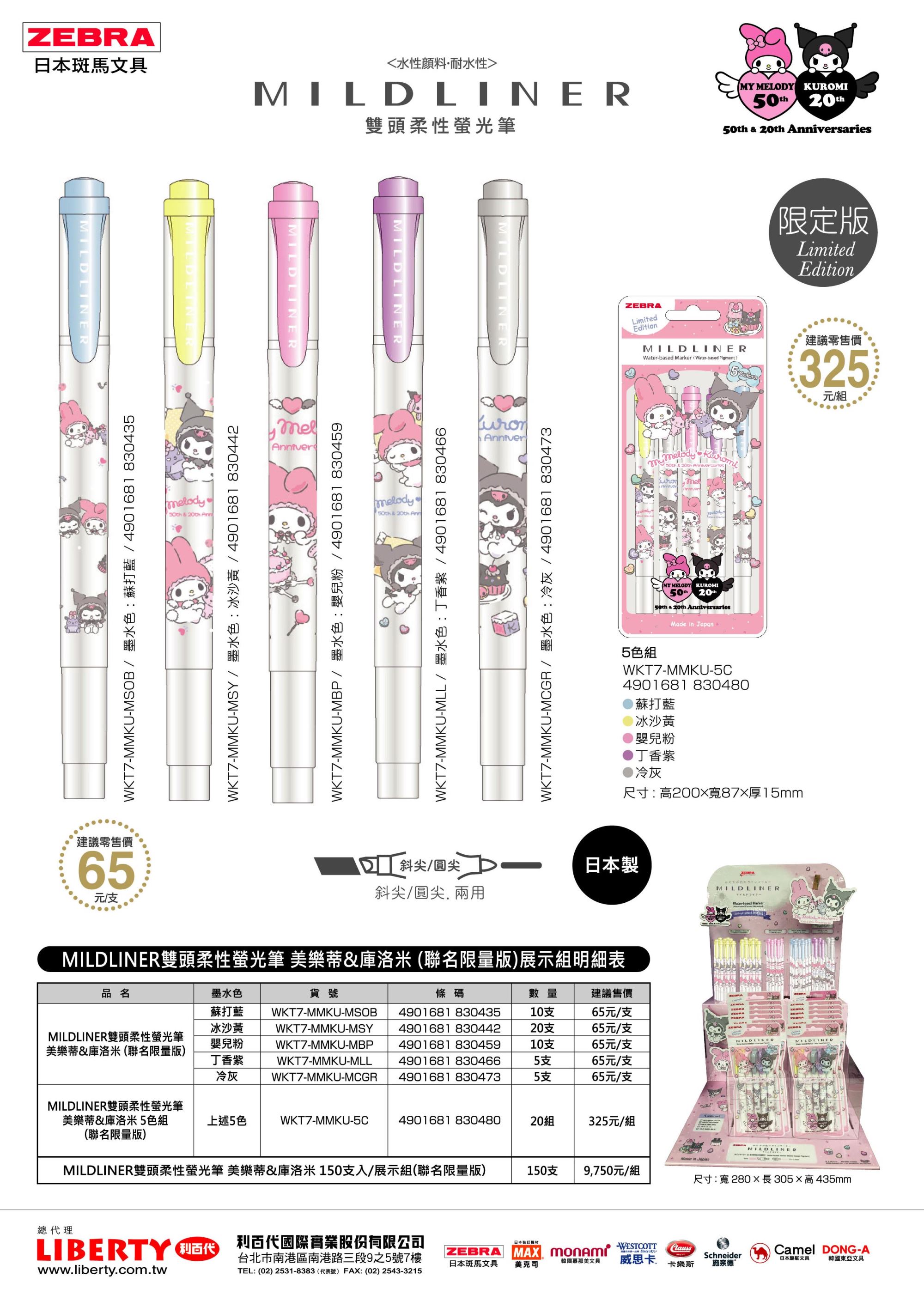 - MILDLINER WKT7-MMKU 雙頭柔性螢光筆 美樂蒂&庫洛米 聯名限量款