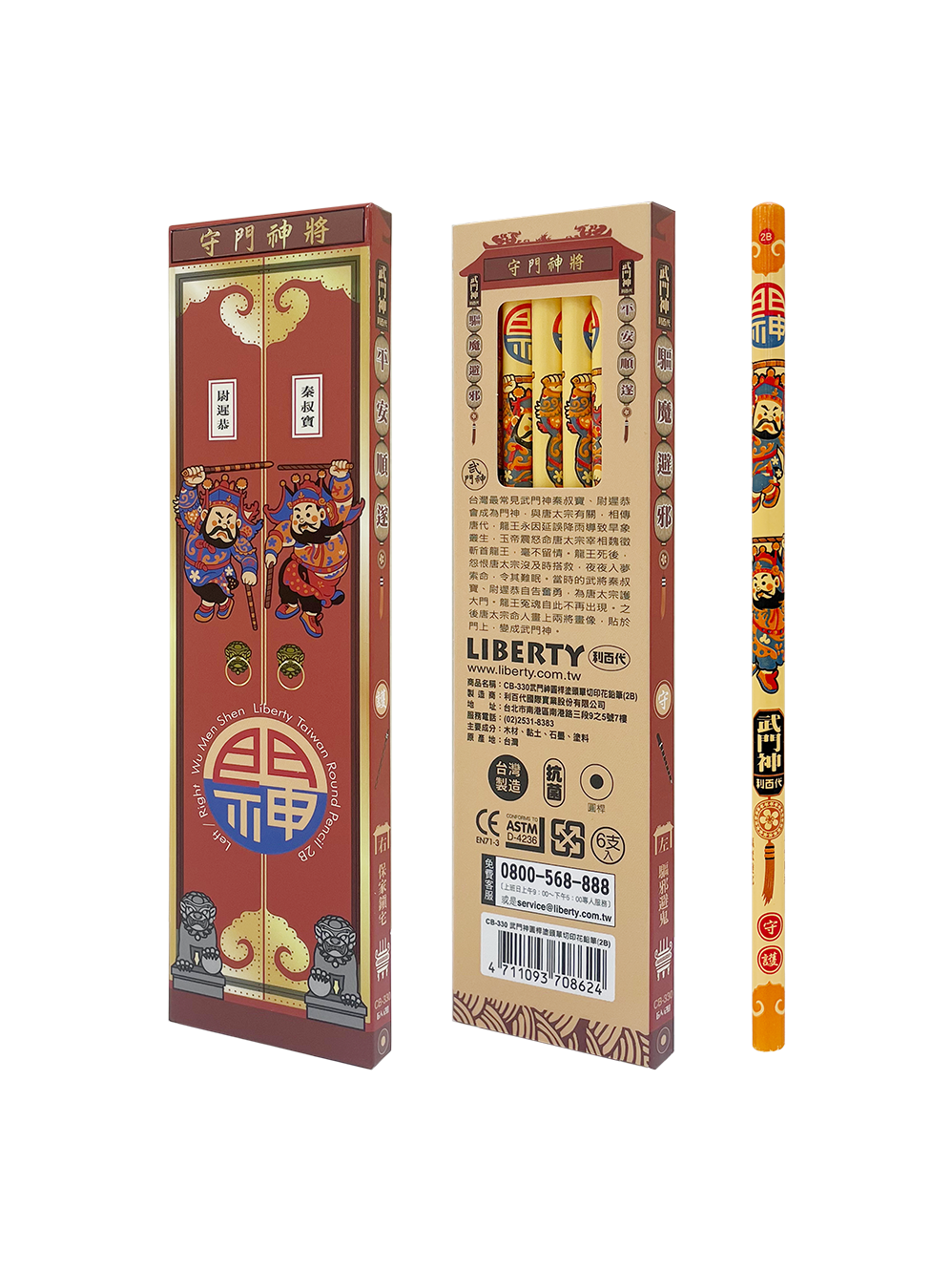 利百代CB-330武門神圓桿印花鉛筆,將守護、平安與順利的祝福融入日常書寫之中。故事由來包裝上有詳細說明,搭配 2B 鉛芯,書寫滑順、濃淡適中,無論是考試、筆記或日常使用皆十分合適。圓桿筆身結合抗菌處理,提升使用時的安心感;全程台灣製造,品質細節層層把關,兼具實用性與收藏價值,是自用與送禮的理想選擇。