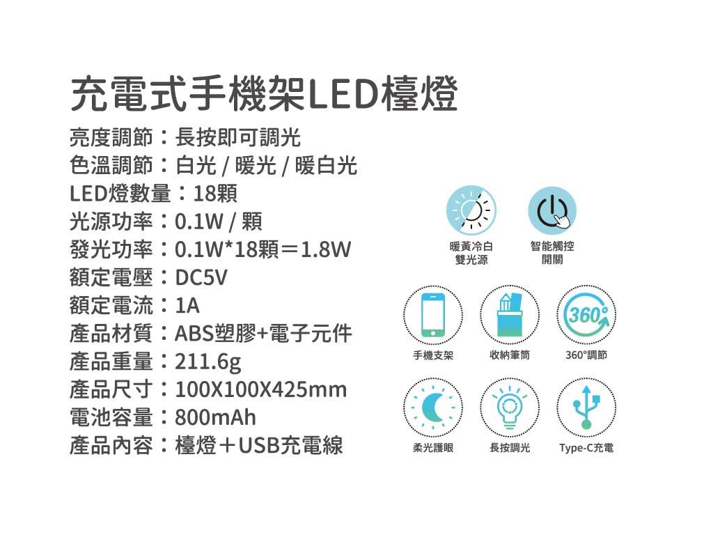 • 手機立架設計,追劇、視訊更便利 • 多功能收納筆筒,桌面整潔更有序 • 暖黃/冷白雙光源,依情境切換舒適光色,長時間使用也更護眼 • Type-C 充電介面,相容性高、充電更快速 • 360°自由調節,照明角度隨心所欲 • 長按無段調光,亮度細緻調整更精準