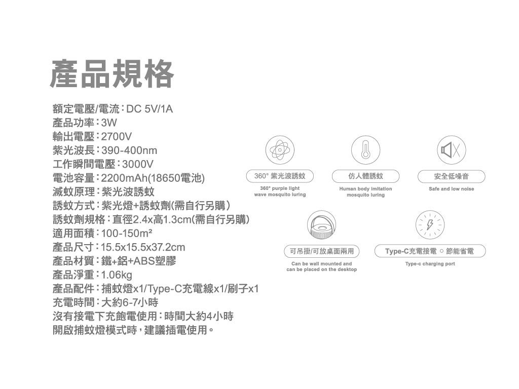 • 360° 環吸滅蚊設計,全方位吸引並捕捉蚊蟲,有效提升滅蚊範圍。
