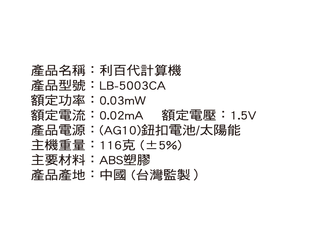 利百代計算機LB-5003CA (新包裝)