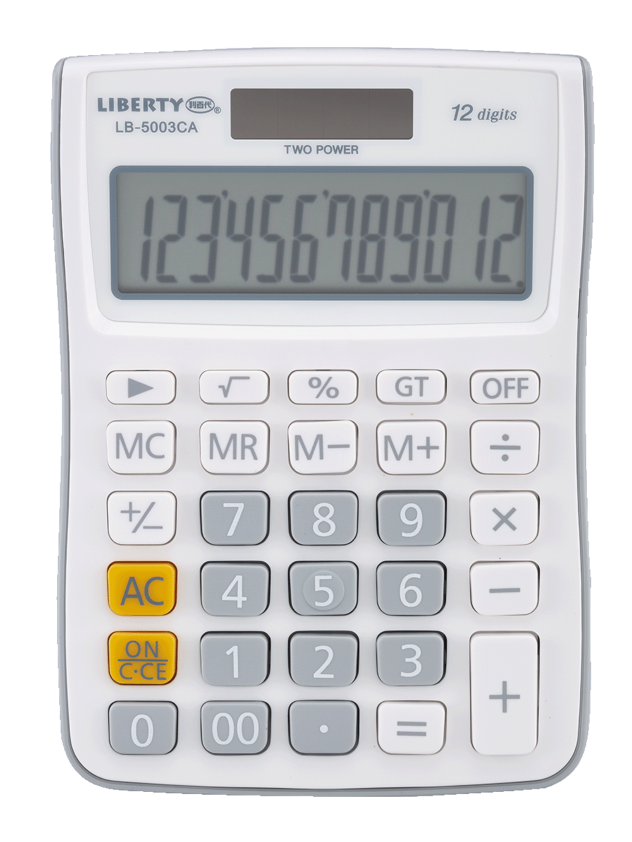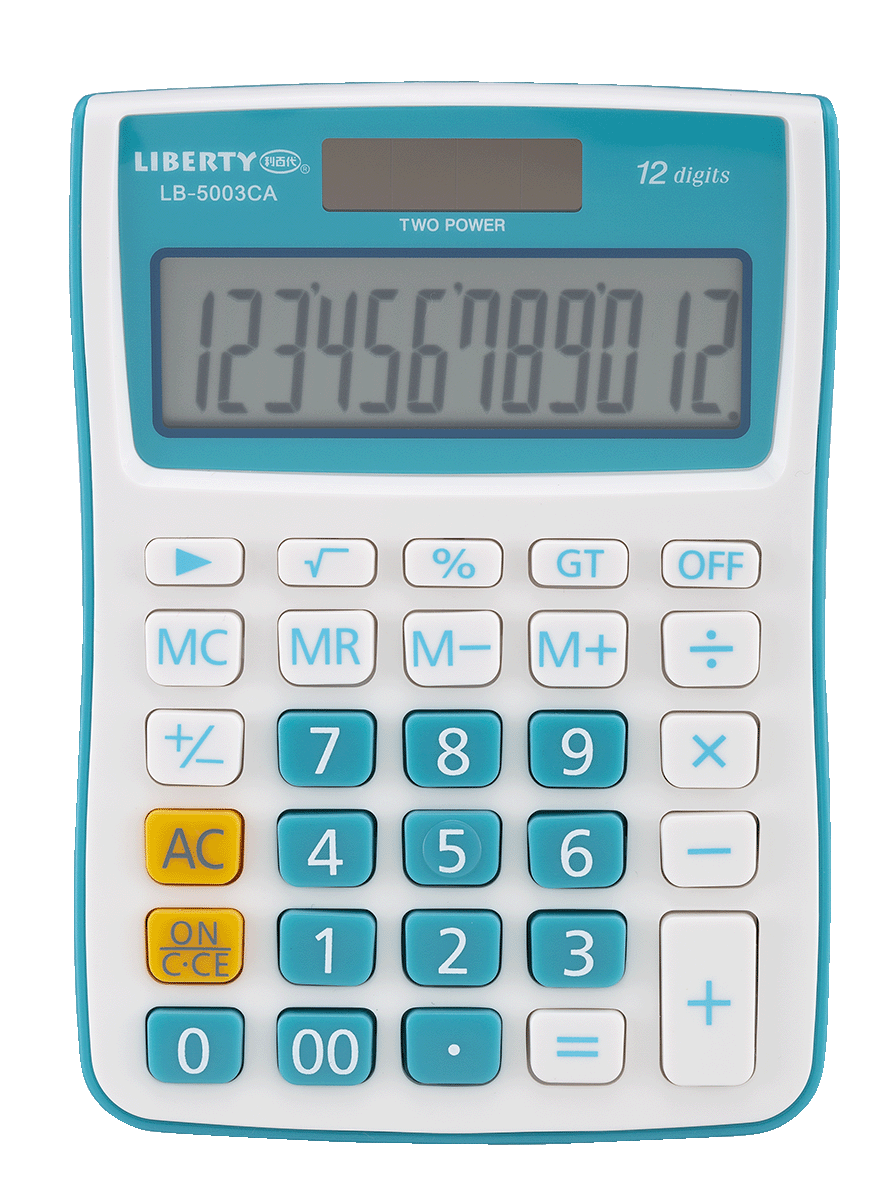 時尚亮眼的桌上型計算機,純白機身對比黑、紅、藍、白四款色系,彩漾繽紛。12位元數字大螢幕顯示,字幕清晰、不留殘影,護眼消除疲勞。使用太陽能與電池雙模組,省電裝置隨時保持最佳電力狀態,照射光源即可充電,不用擔心使用中斷。輕巧機型不到15公分,方便攜帶和收納;鍵盤符合人體工學設計,輕鬆按壓好省力。計算功能鍵完整,包含開根號、GT總計、MRC、M+、M-、MU以及加減乘除四則運算等,適合辦公室文書、家計、學生使用。舒適仰角設計能以更佳視眼角度觀看螢幕數字,機身堅固耐用,滿足各族群使用需求。