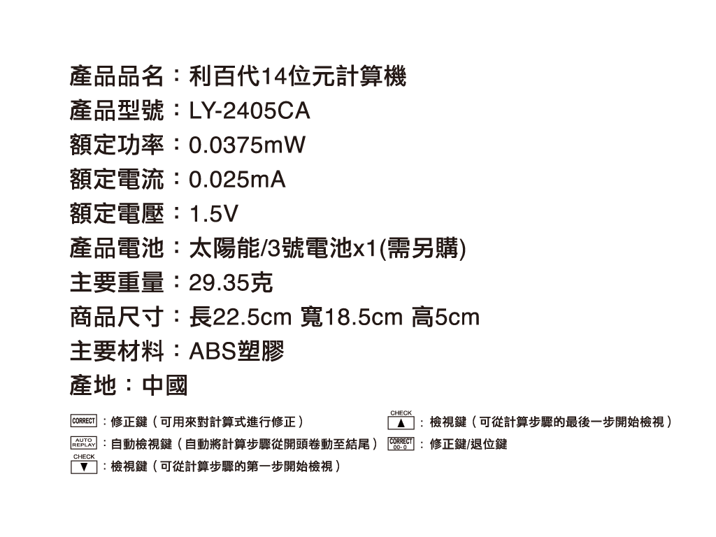 利百代LY-2405CA 14位元計算機