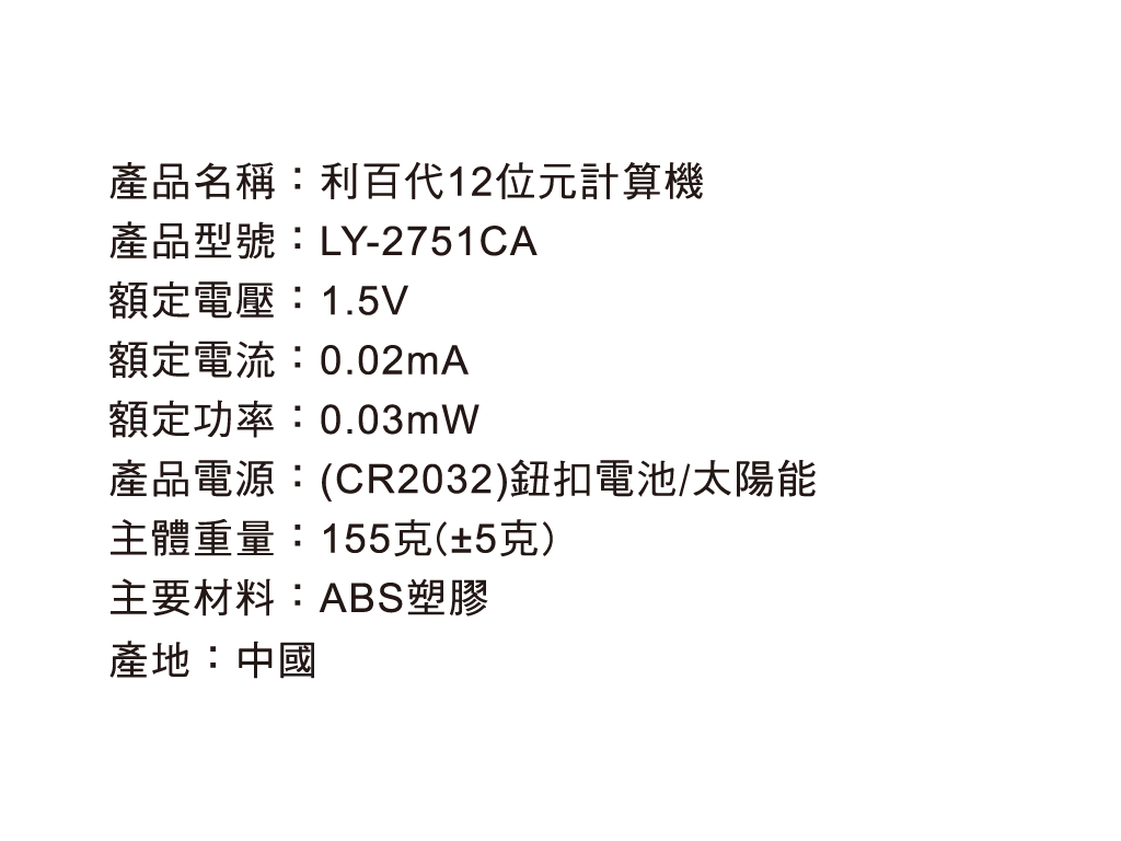 利百代LY-2751CA 12位元計算機