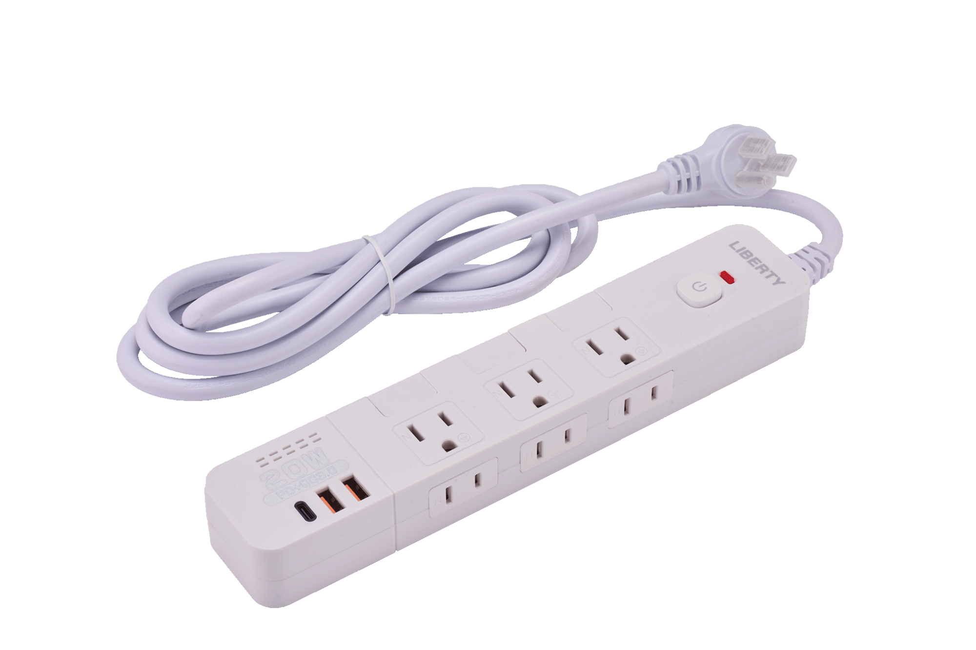 利百代LY-465P06、LY-58506系列平貼延長線,高導電銅芯與耐熱阻燃外殼,提供穩定電力與多重保護,是居家、辦公必備的智慧延長線。LY-465P06四開六插平貼式20WPD延長線結合 USB-A+Type-C PD 20W 快充功能,同時滿足傳統插頭與行動裝置充電需求。採用 平貼式插頭設計,可緊貼牆面節省空間,並配置四組獨立開關控制,安全又節能。LY-58506 為 5 開關 8 插座設計的平貼延長線,採用 1.8 公尺長度線材與扁平插頭設計,兼顧便利與安全。具備獨立開關與過載保護功能,能有效節能並降低電力風險。